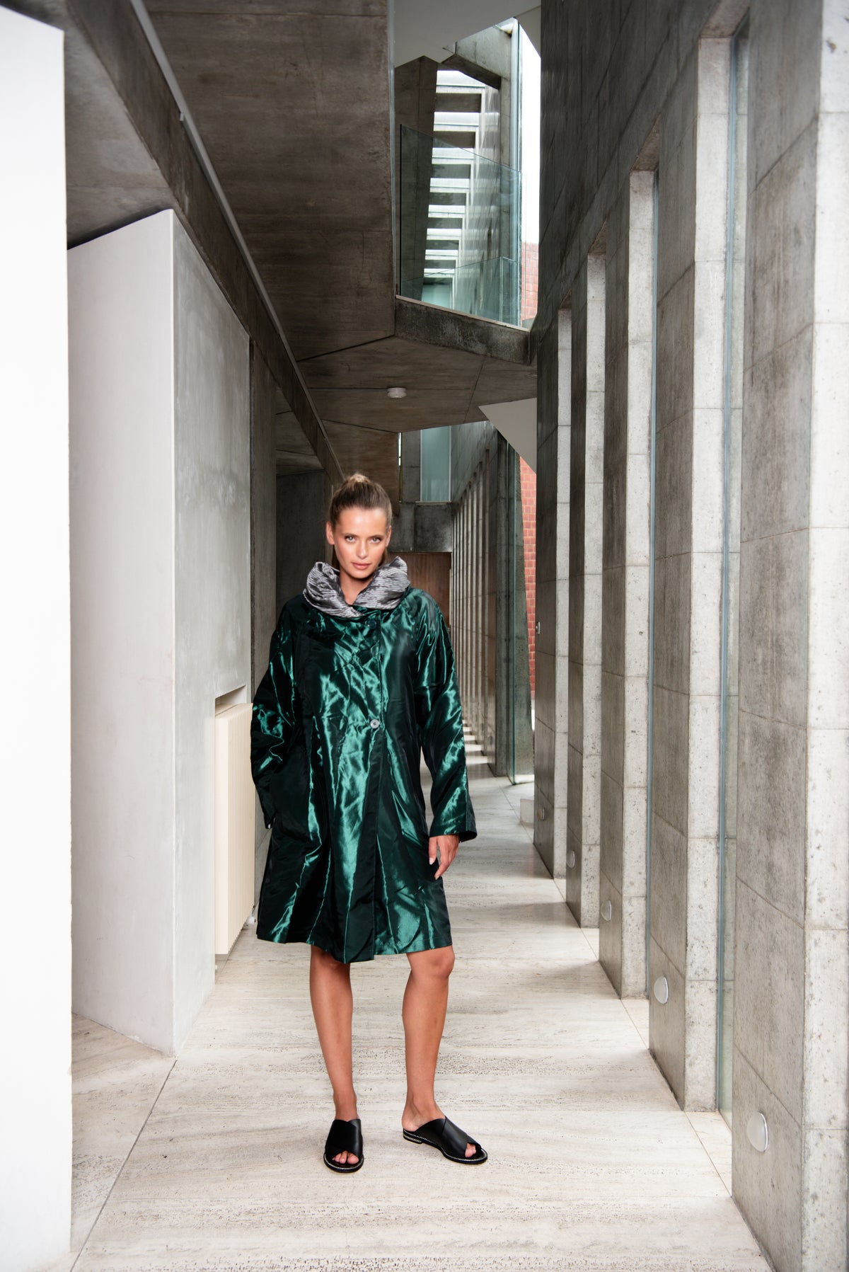 The magic words of fashion; reversible AND pockets. With its elegant pleated collar that seconds as a hood, our Pleated Reversible Coat is the item you won’t want to leave home without. A sweetly flared sleeve and structured fabric, this coat moves with grace and life. And did we mention, it’s reversible and it has pockets!