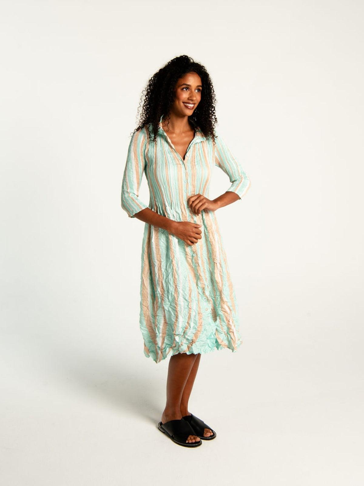 Designed with a centre button-down front, this versatile piece can be styled your way. Choose to wear it buttoned as a sleek dress, open as a lightweight coat, or layered over tailored separates for a refined, everyday statement. Sculptural yet easy, it’s a confident silhouette made for women who dress with intention.