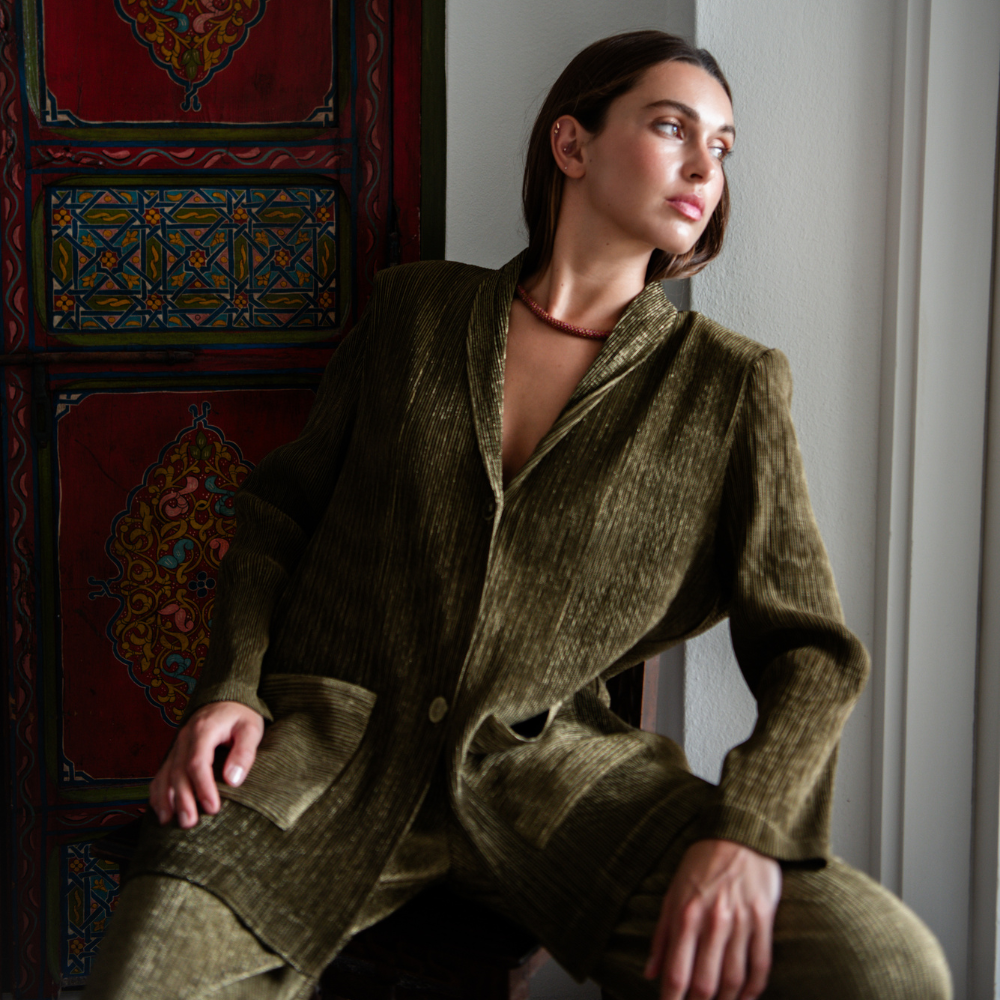 Alquema designs with every woman in mind. The intricate nature of our Shibori pleating lends itself to versatile cuts, fitting all body shapes.