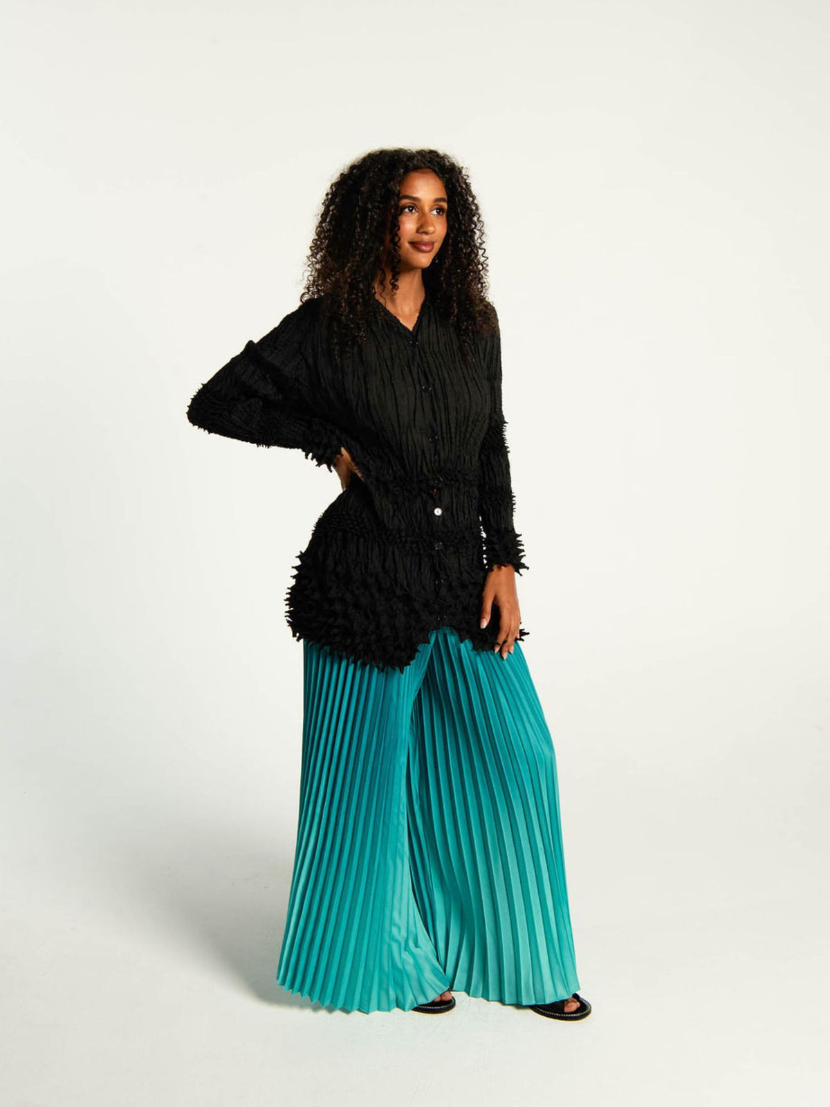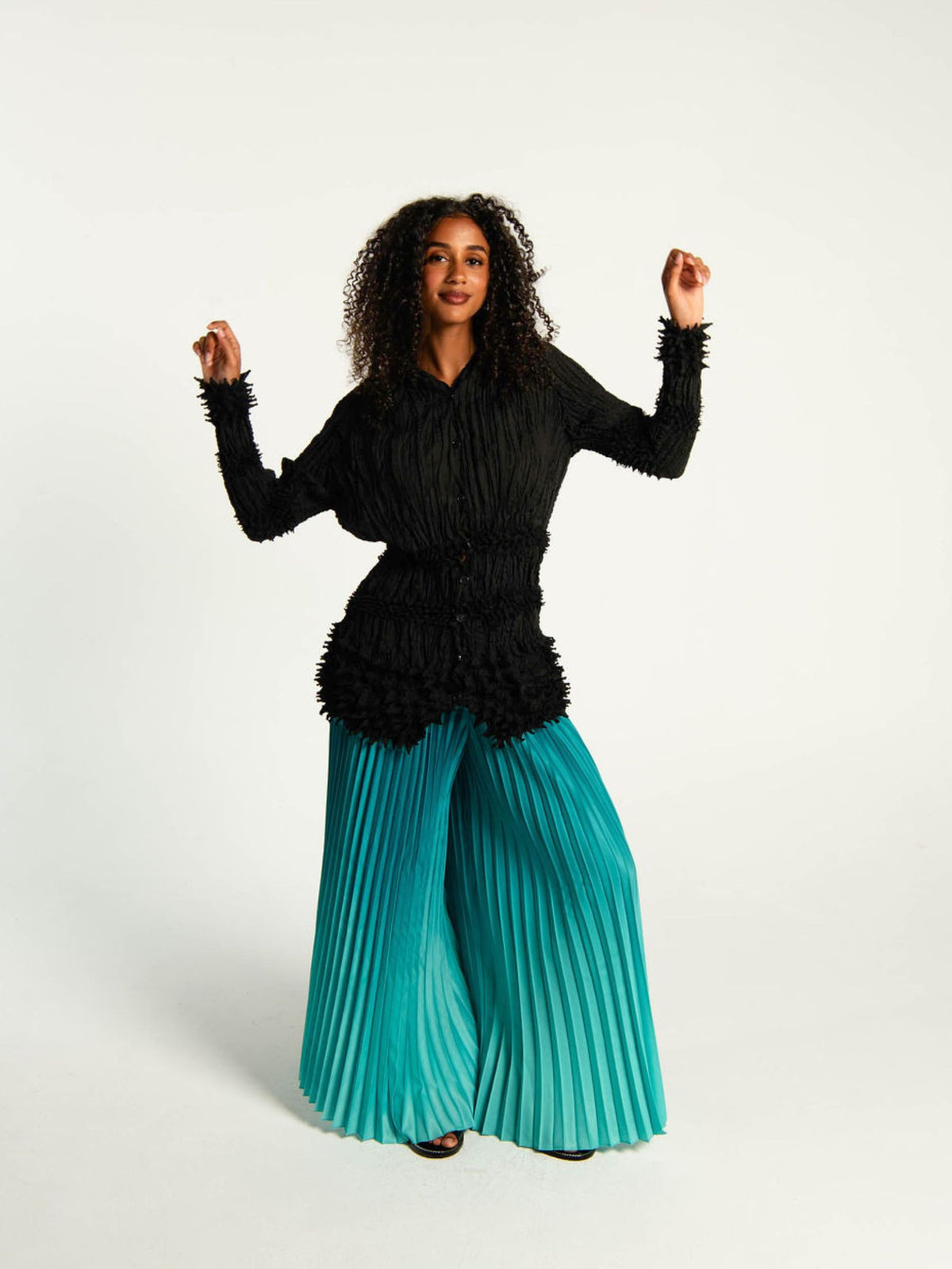 A celebration of texture and technique, the Urchin Top returns to the foundations of Alquema’s design language. Defined by sculptural shibori work and tactile surface texture, this long sleeve style balances structure with style. Soft volume through the body is contrasted with richly textured panels, creating a dimensional silhouette that feels considered from every angle. Finished with a button-through front, it can be worn as a top or styled open as a lightweight layer.